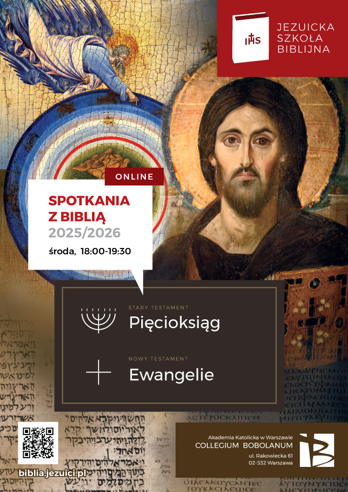 w nadchodzącą środę rusza kolejna edycja Jezuickiej Szkoły Biblijnej. Co to takiego? Pięć lat temu rozpoczęliśmy na naszej uczelni, AKW Collegium Bobolanum, cykl spotkań poświęconych Pismu św. W tym roku zaczynamy na nowo. Zajmować się będziemy przede wszystkim Pięcioksięgiem i Ewangeliami, centralnymi częściami dla ST i NT.